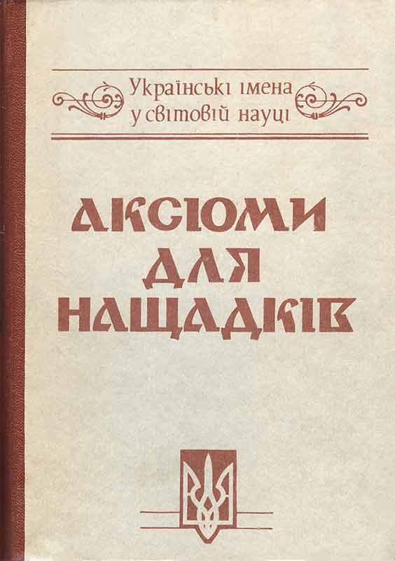 Аксіоми для нащадків: українські імена у світовій науці = Axioms for descendants : збірник нарисів / упорядкування і передмова Олега Романчука. – Львів : Меморіал, 1992. – 540, [3] с., [12] арк. іл. – ( в паліт.) ISBN 5-8690-010-6.