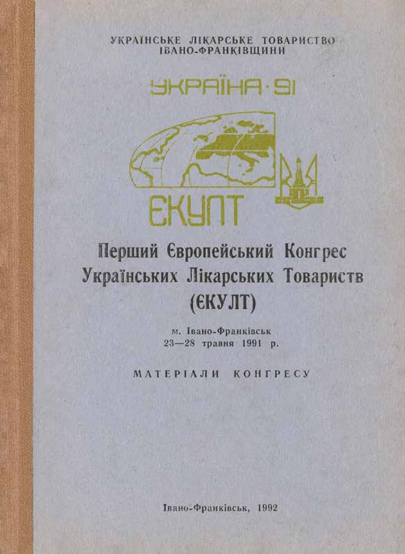 Перший Європейський Конгрес Українських Лікарських Товариств (ЄКУЛТ) : матеріали конгресу, м. Івано-Франківськ, 23-28 травня 1991 р. / Українське Лікарське Товариство Івано-Франківщини ; редкол.: Нестор Середюк, Микола Долішній, Іван Мазепа, Йосип Библюк, Ігор Вакалюк. – Івано-Франківськ, 1992. – 183 с.